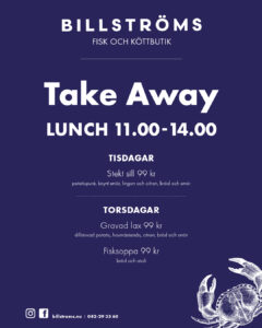 I vår butik hittar du alltid färsk fisk, skaldjur, kött, ost och chark. Dessutom lagar vi smakrika take away-luncher, middagar, såser och en mängd härliga tillbehör.